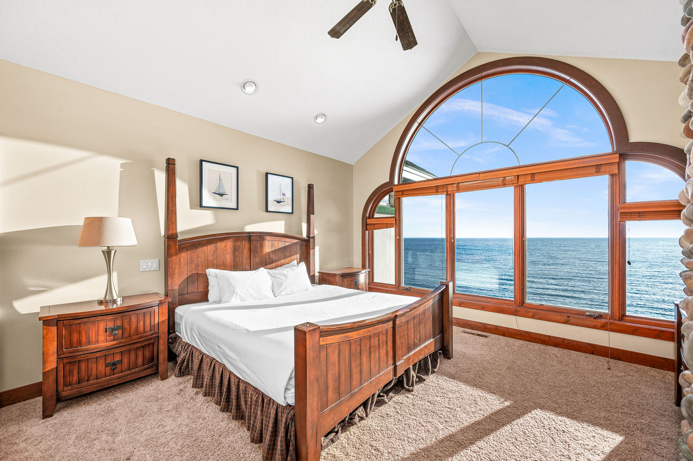 The 5-bedroom ski lodge effortlessly combines rustic charm with modern comfort, featuring luxurious jacuzzi tubs and stunning views of Lake Superior. Exposed wooden beams, locally sourced stone, and a grand river rock fireplace create an authentic alpine ambiance. The space is adorned with rich leather furniture and vintage ski equipment, offering a nod to classic lodge décor while exuding an elevated, stylish feel. With ample room for your next North Shore adventure, this lodge is the perfect setting for gathering friends, family, or corporate retreats. Located approximately one mile from the main lodge.